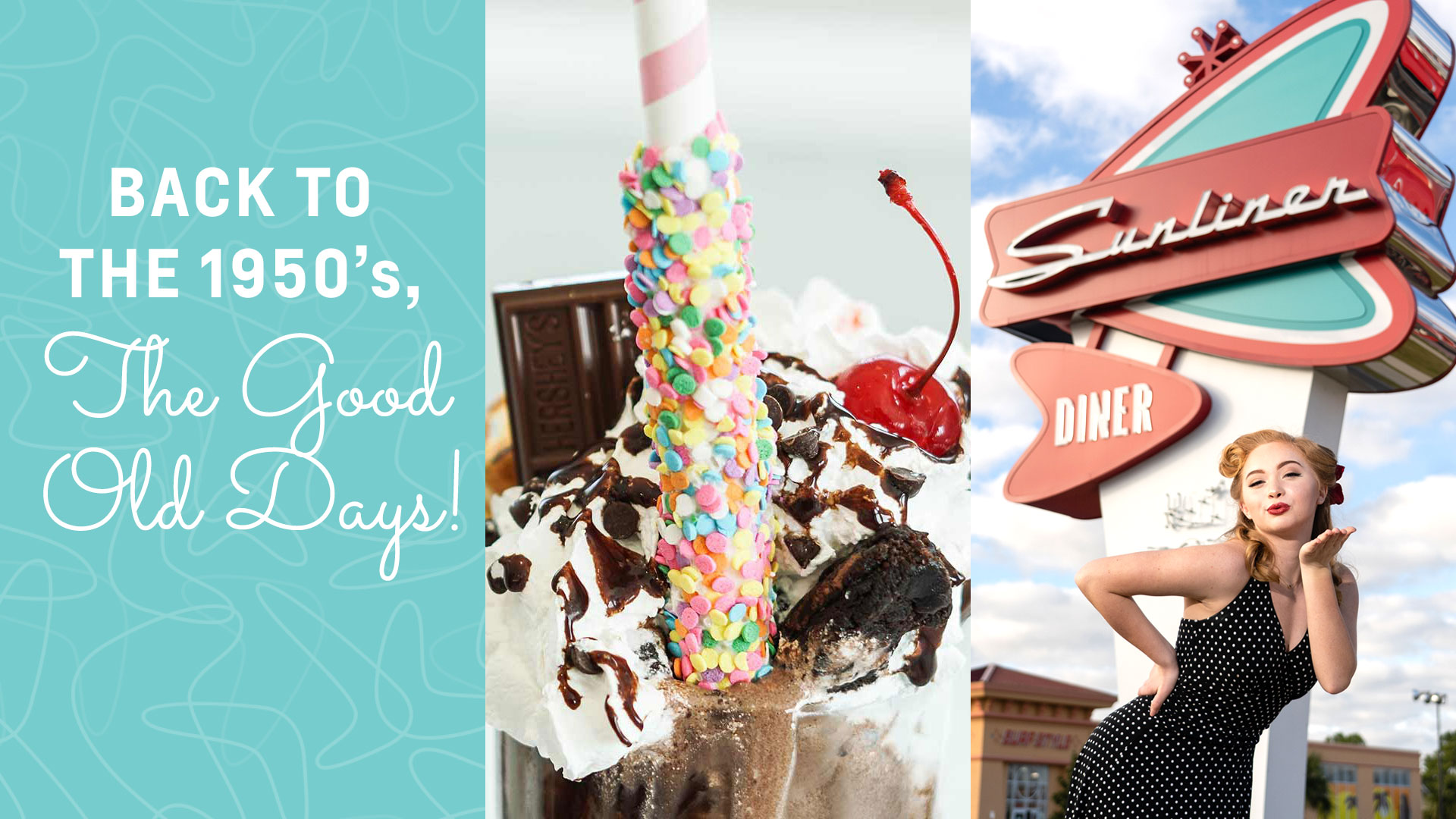 With our retro newspaper menus, collector cars, hand-spun milkshakes, classic diner cuisine and breakfast all-day, The Sunliner Diner is sure to become your favorite spot to hang out- It’s Guaranteed! Take a blast to the past with your family and friends, come and see what all the buzz is about- the fun never ends! Visit our Gift Shop to bring your memories of a swell time home with you!